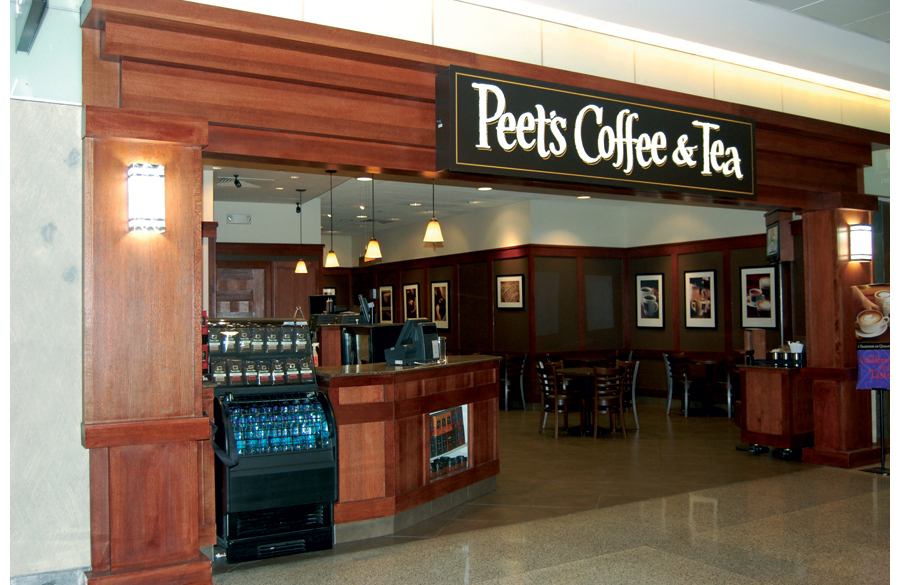 This 200 sq. ft. lounge is the first Peet’s Coffee in any airport in the country. Matrix worked closely with the corporate architect to install special finishes for the custom woodwork and wall systems.